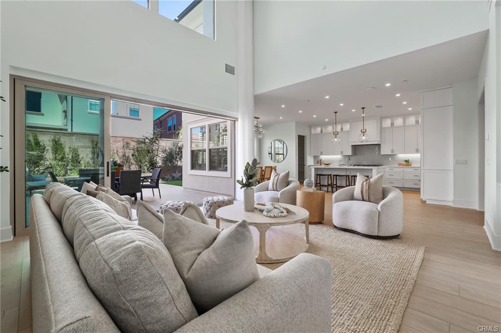 Your luxury residence is located in the prestigious Portola Springs community. With over $300,000 in upgrades, this move-in ready luxury home offers a resort-style backyard and a premium private, quiet location. This beautifully upgraded Cielo Plan 2 residence built by Shea Homes features a bright and airy open-concept floor plan with dramatic 20-foot ceilings. The spacious Great Room flows seamlessly into the dining area and gourmet kitchen, creating the perfect space for everyday living and entertaining. The first floor also includes a guest bedroom with a private bath and an additional powder room. The chef-inspired gourmet kitchen is equipped with Wolf and Sub-Zero stainless steel appliances, quartz countertops, designer backsplash, upgraded cabinetry, a walk-in pantry, and a large center island with seating. Upstairs, the grand primary suite features a luxurious bathroom and His and Hers walk-in closets. Two additional spacious en-suite bedrooms, a versatile loft, and a laundry room with sink and window complete the second level. The professionally landscaped backyard with fruit trees provides a peaceful setting for relaxation and entertaining. The two-car garage includes an EV charging outlet. Additional upgrades include 26 fully paid solar panels, motorized living room curtains, RH Light Fixtures, an automatic water softener system, and plantation shutters throughout. Residents of Portola Springs enjoy exceptional resort-style amenities including multiple Jr. Olympic pools, wading pools, parks with shade structures, playgrounds, BBQ and picnic areas, basketball, volleyball, tennis, and pickleball courts, scenic walking trails, and more. Portola Springs Community Park features a community center, lighted softball and soccer fields, and additional recreational facilities. Ideally located in Irvine, close to shopping, dining, major freeways, recreation, and top-rated schools.